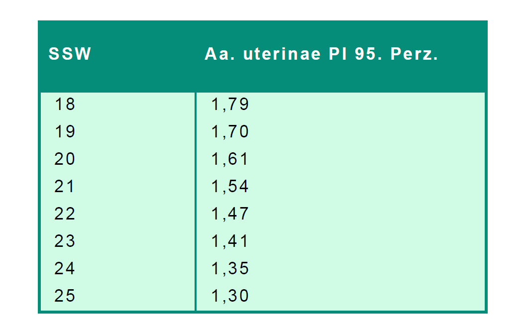Referenzwerte des Pulsatilityindex der Aa. uterinae: